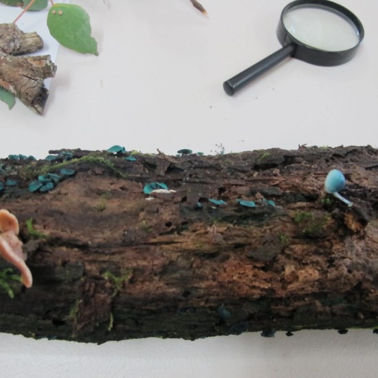 A room of tables laden with the freshly foraged. Morels, books, magnifying glasses, Amanita muscaria, slime moulds, lichens, cordyceps, fungi themed playing cards, pine mushrooms, death caps, mythology illustrations and a woman proudly holding a damp log. The workshop participants are diverse: A new Dad, a cop, an ex-chef, a fashion designer, some goat-farmers. In 2012 I attended the Fungi- An Introduction to a Curious Kingdom workshop and the participants included a Hungarian engineer, a survivalist, a Hansard reporter, a jazz musician and Todd, founder of Fungi Culture. The Bizarre and the Beautiful- A Deeper Exploration of a Curious Kingdom kicks off with a lecture. The woman cradling the log (which is covered in exquisite green and teal fungi) turns out to be Cathy, Pouliot’s assistant, a learned microbiologist. The group talk about their links to fungi. The ex-chef can spot an edible mushroom at fifteen paces. A man tells the story of how lichen destroyed his roof, ‘They wrecked my roof. Colorbond steel!’ Pouliot talks about the cultural side of fungi, how folks ate mushrooms for subsistence during the war, how in France they eat chanterelles, morels, truffles. In Italy its porcini o’clock. The goat-farmers are at the workshop because they are worried their goats are going to eat something poisonous.